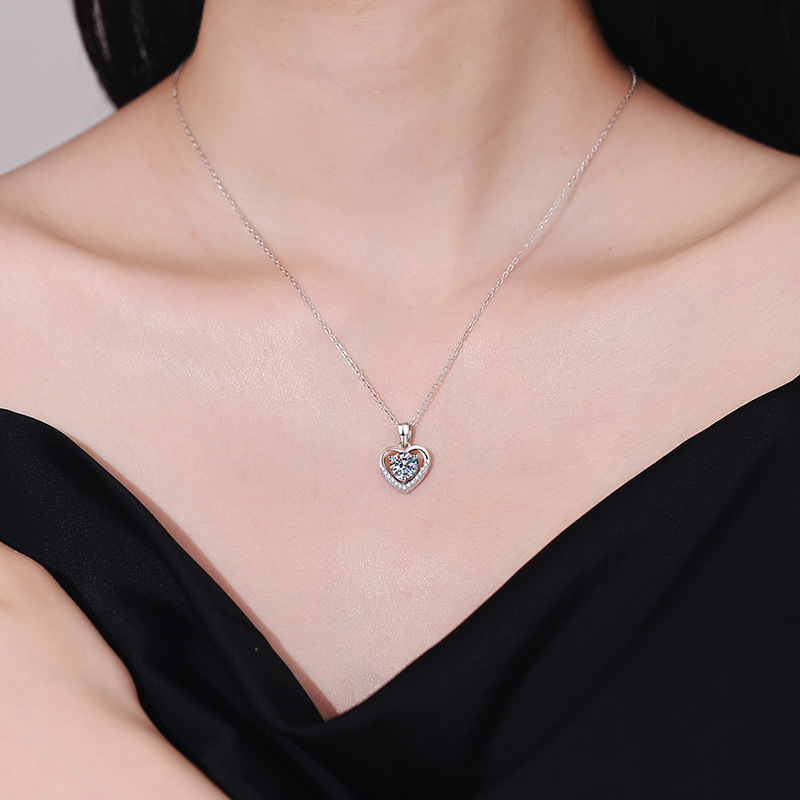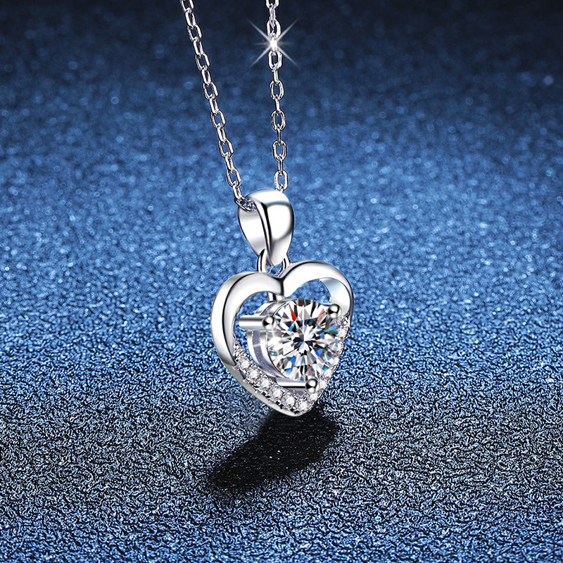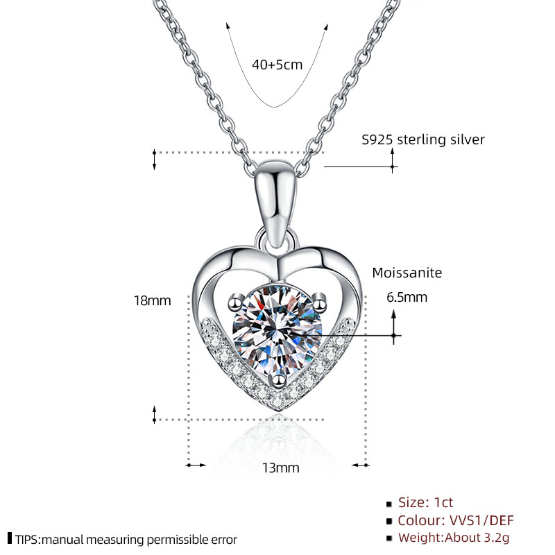 1 karátos Moissanite gyémánt 925 ezüst nyaklánc