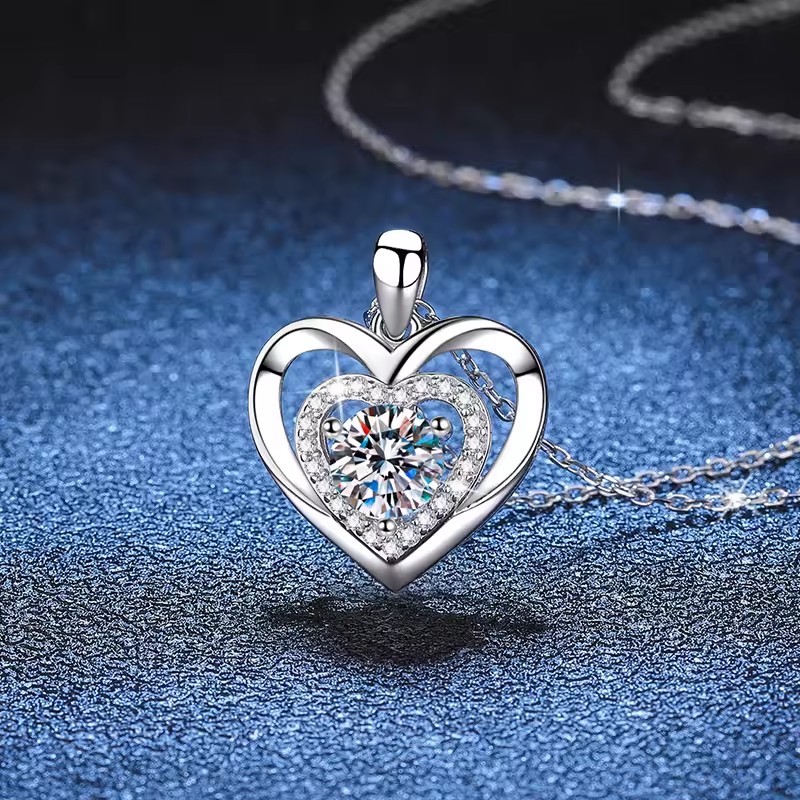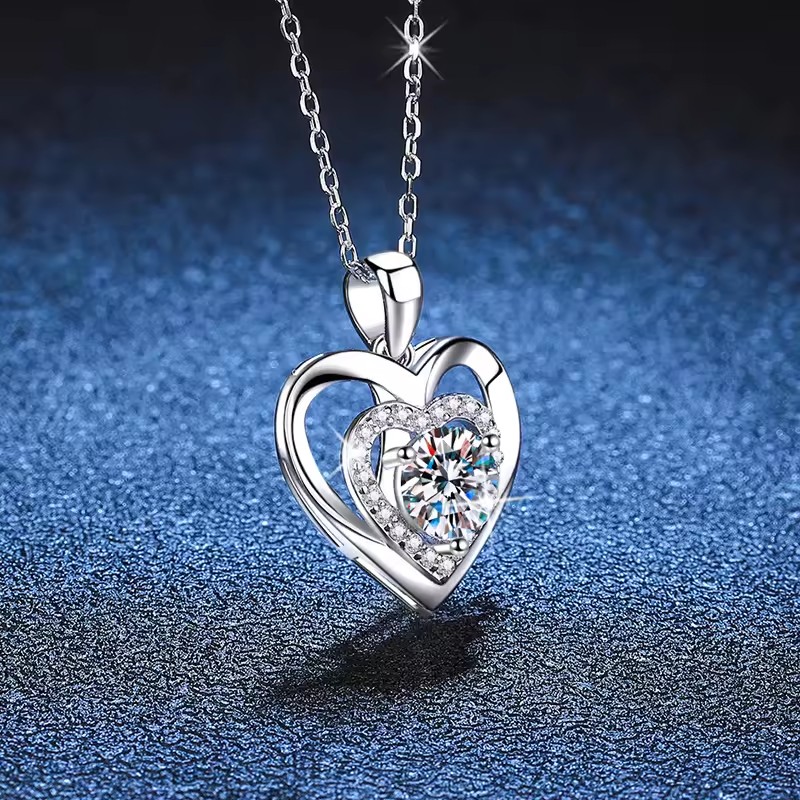 1 karátos Moissanite gyémánt 925 ezüst nyaklánc