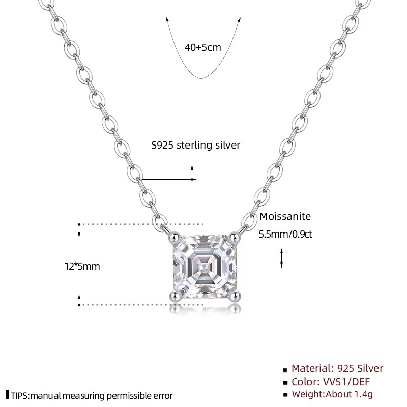 1 karátos Moissanite gyémánt 925 ezüst nyaklánc