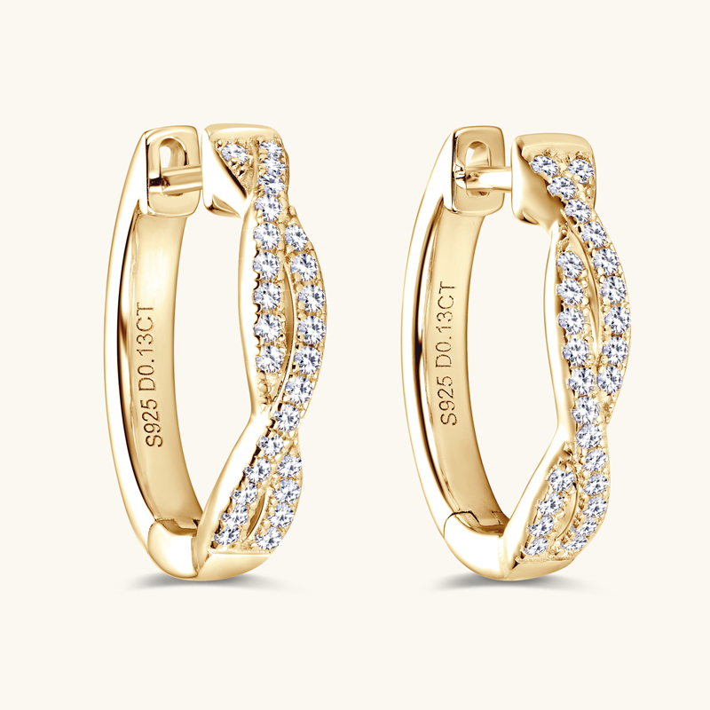 14K aranyozott karika ezüst fülbevaló – Moissanite gyémánt kövekkel, női