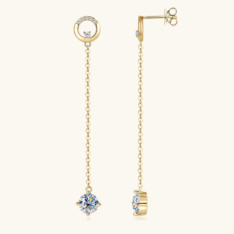 14K aranyozott lógós ezüst fülbevaló – 2 karátos Moissanite gyémánt kövekkel