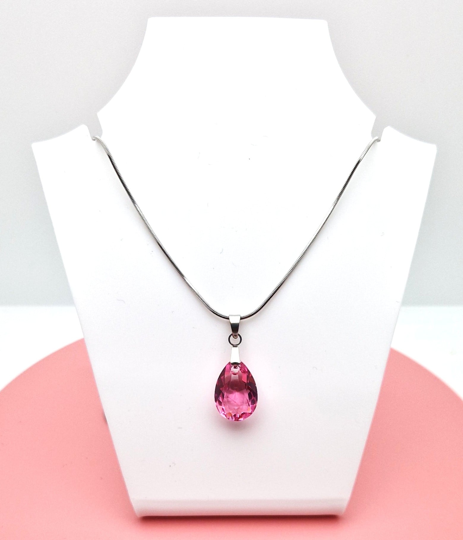 16 mm Csepp Swarovski kristályos nemesacél nyaklánc – Rose