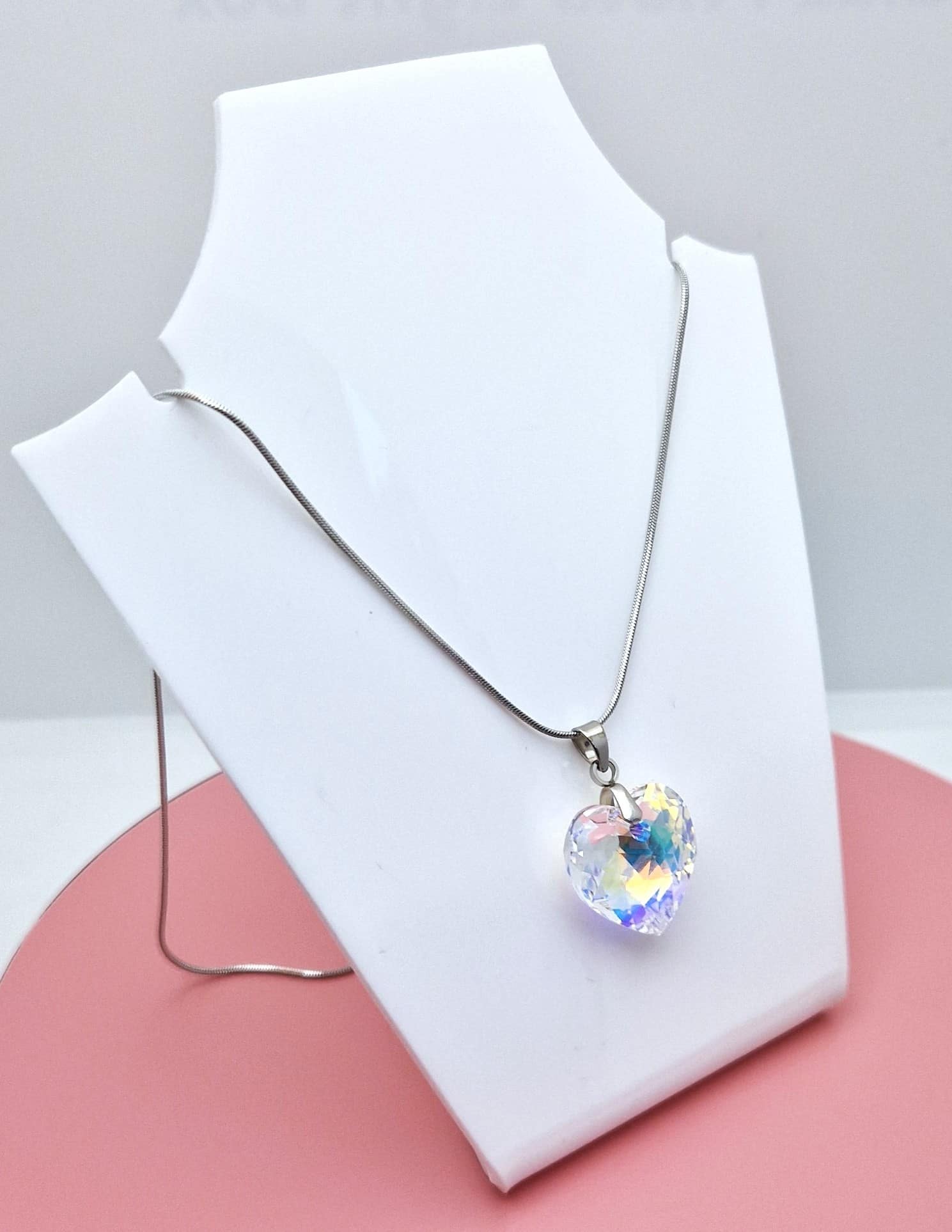 18 mm Szív Swarovski kristályos nemesacél nyaklánc – Crystal AB – Ajándék díszdobozban