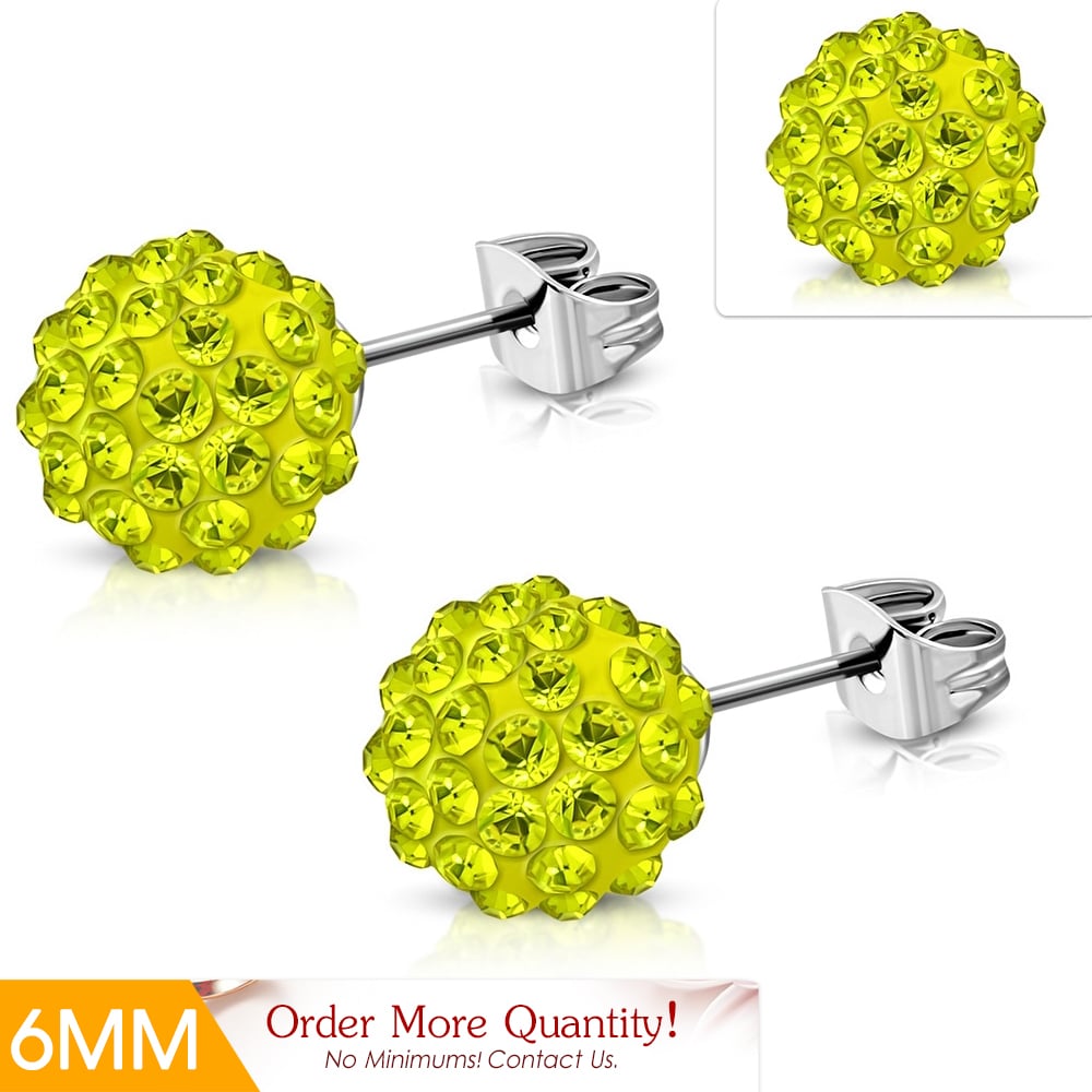 6 mm-es shamballa fülbevaló sárga cirkónia kristályokkal ajándék díszdobozban