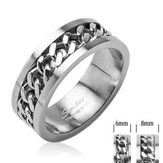 6 mm – Ezüst színű nemesacél gyűrű, középen forgó lánc dísszel