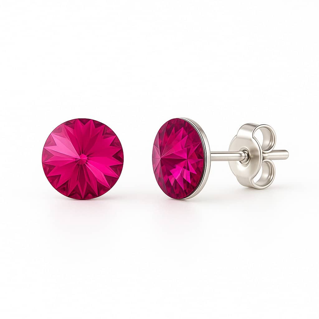 6 mm Rivoli Swarovski kristályos nemesacél fülbevaló – Fuchsia