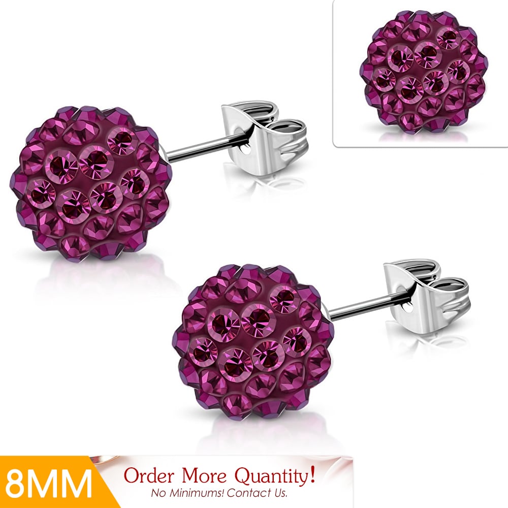6 mm-es shamballa fülbevaló lila cirkónia kristályokkal ajándék díszdobozban