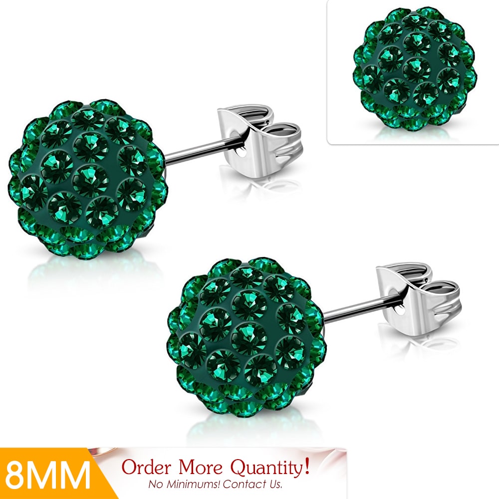 8 mm-es shamballa fülbevaló sötét zöld cirkónia kristályokkal ajándék díszdobozban