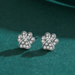 Bedugós, 925 ezüst fülbevaló – cica mancs, cirkónia kristályokkal díszítve. Az ékszer anyaga 925 sterling ezüst, amit a magyar szabályoknak megfelelően: 2g feletti termék esetén a termékbe ütött névjel és/vagy fémjel tanúsít.