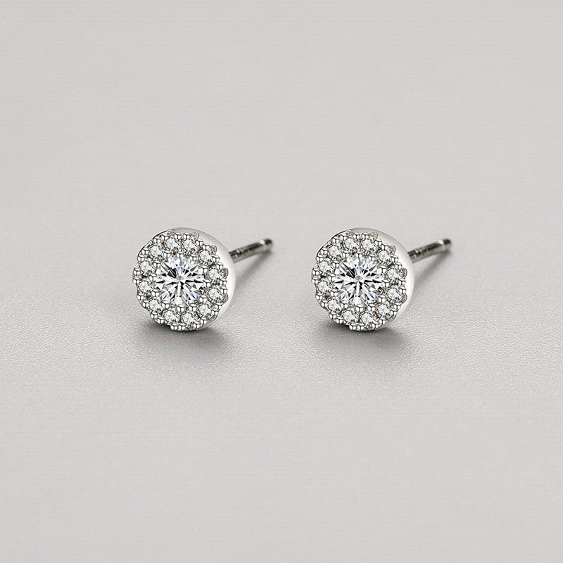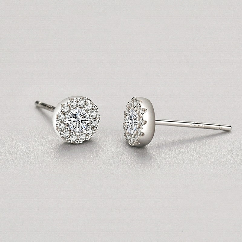 Bedugós, kerek925 ezüst fülbevaló cirkónia kristállyal díszítve. Az ékszer anyaga 925 sterling ezüst, amit a magyar szabályoknak megfelelően: 2g feletti termék esetén a termékbe ütött névjel és/vagy fémjel tanúsít.