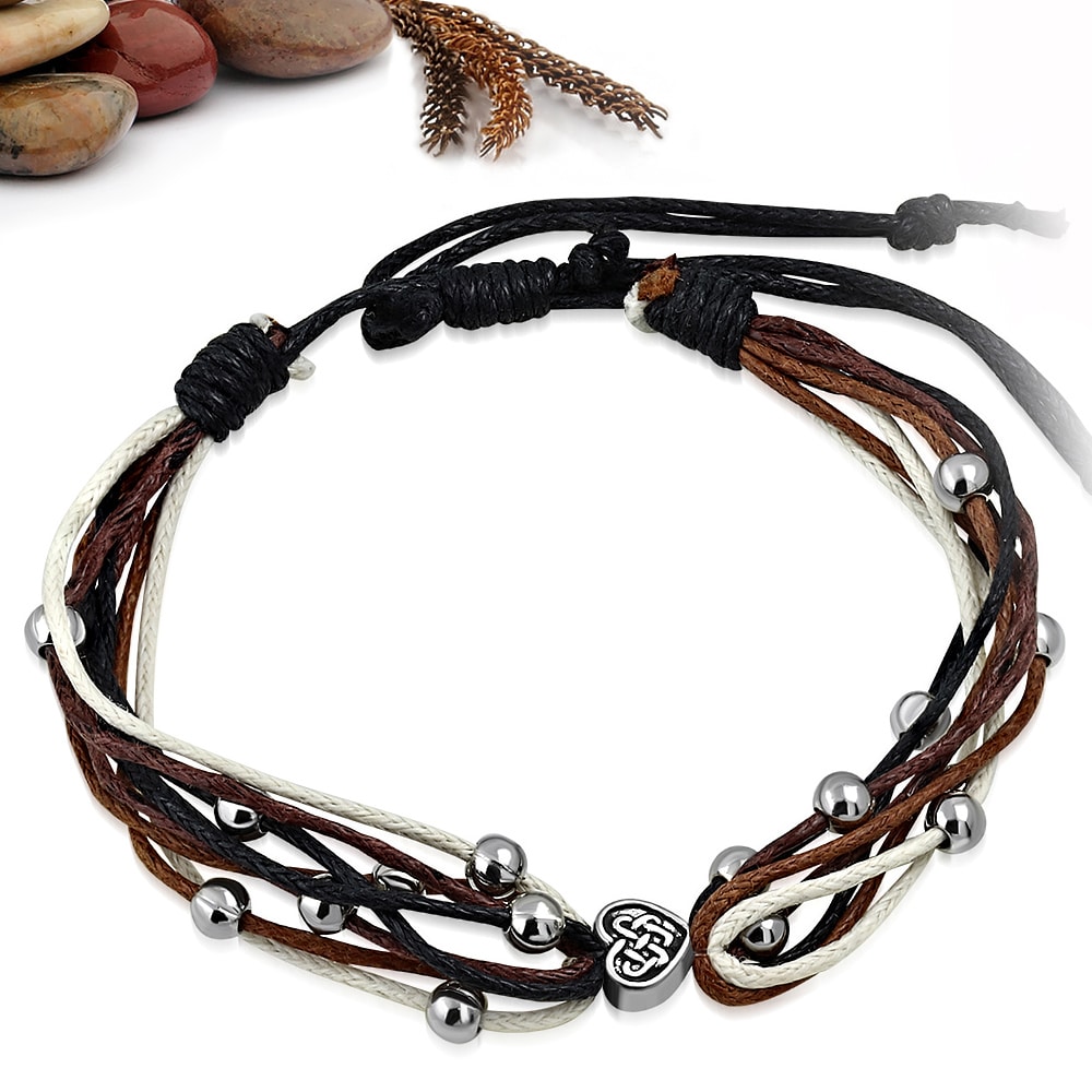 Állítható, divatos, barna színű, több szálas szövet karkötő szív alakú dísszel