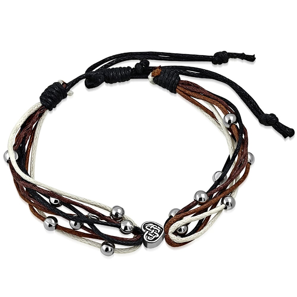 Állítható, divatos, fekete - barna - fehér színű, fonott karkötő