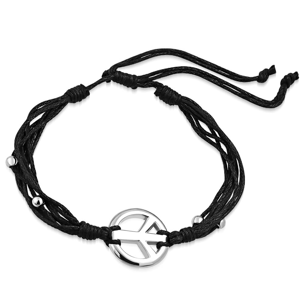 Állítható, divatos, fekete színű, több szálas szövet karkötő béke jel dísszel