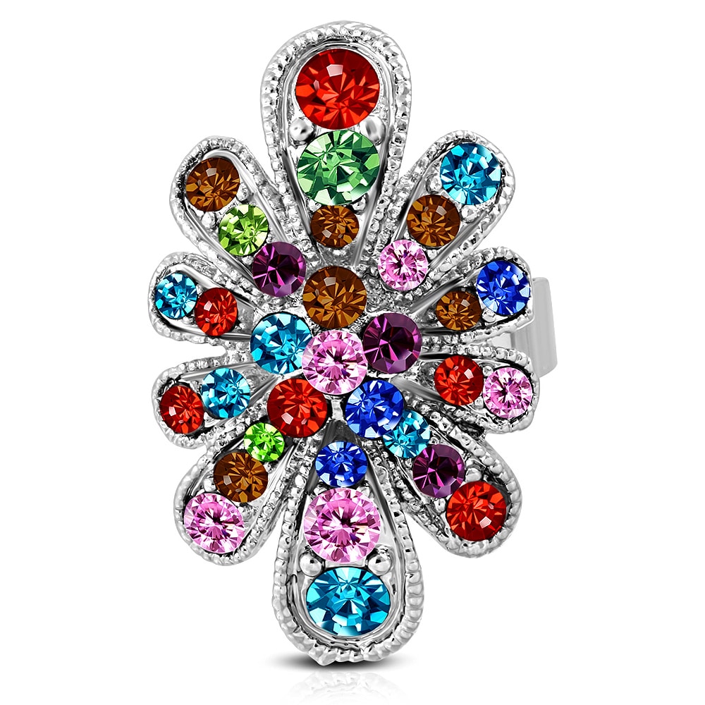 Állítható, virág formájú koktél gyűrű cirkónia kristállyal