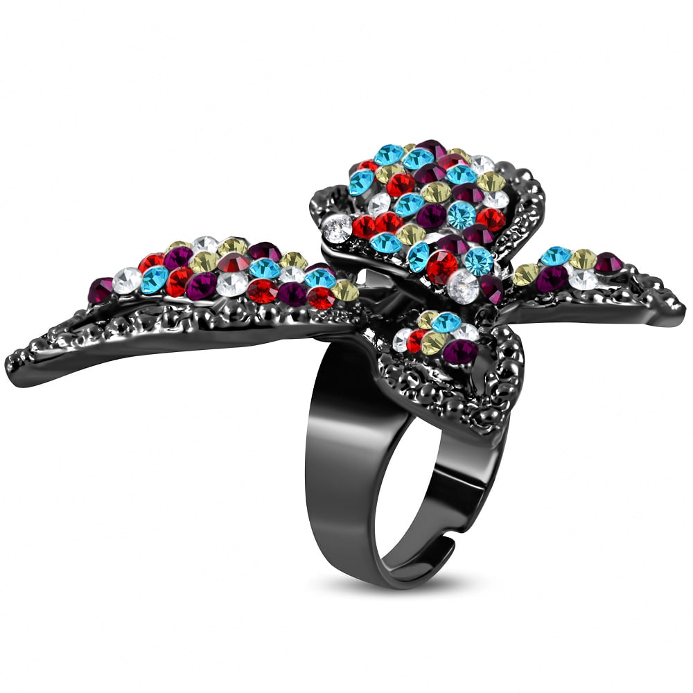 Állítható, pillangó alakú koktél gyűrű cirkónia kristállyal