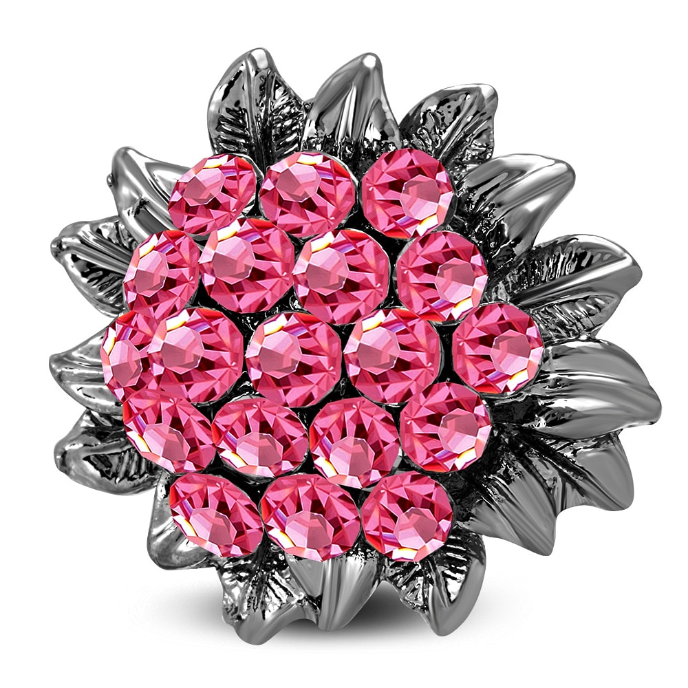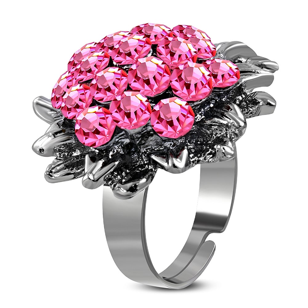 Állítható, virág alakú koktél gyűrű cirkónia kristállyal