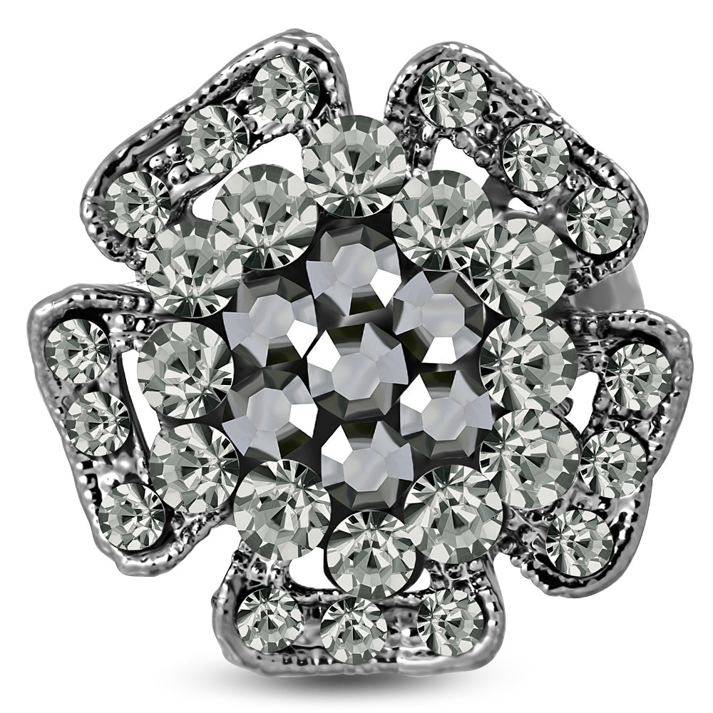 Állítható, virág formájú koktél gyűrű cirkónia kristállyal