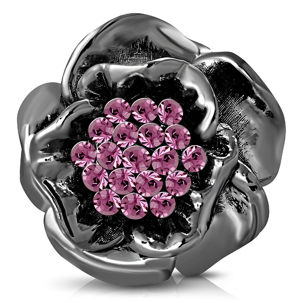 Állítható, virág formájú koktél gyűrű cirkónia kristállyal