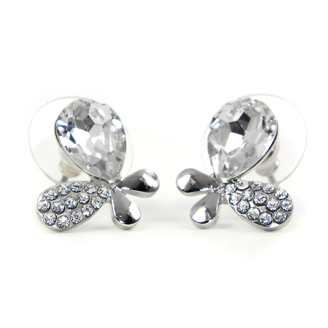 Az átlátszó Swarovski elements kristályokból készült fülbevaló lenyűgöző ragyogással és csillogással tölti meg a teret. A pillangó motívumú dizájn különleges megjelenést kölcsönöz viselőjének.