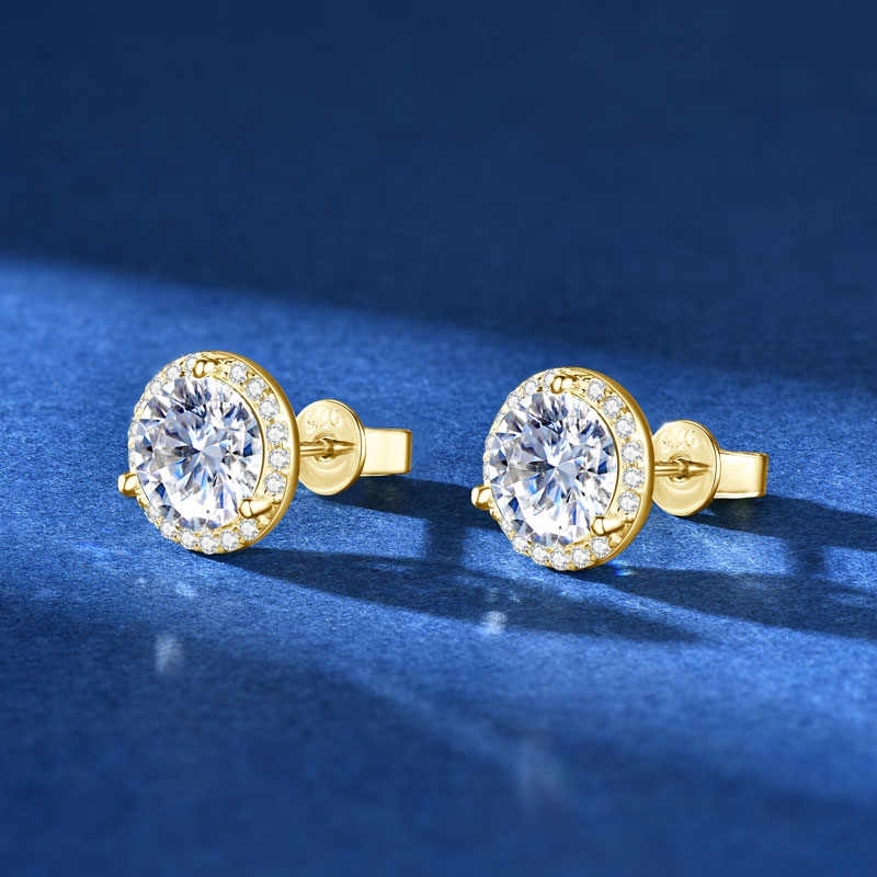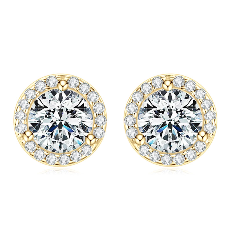 Apró 14K aranyozott bedugós ezüst fülbevaló – 1 karátos Moissanite gyémánt kővel
