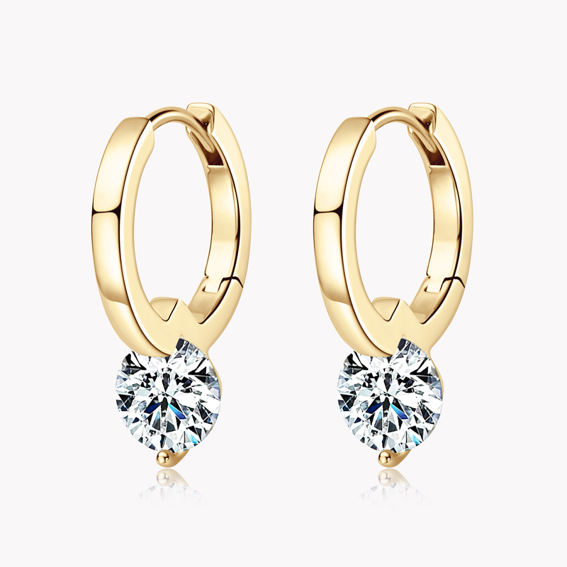 Apró karika 14K aranyozott ezüst fülbevaló – 2 karátos Moissanite gyémánt kővel