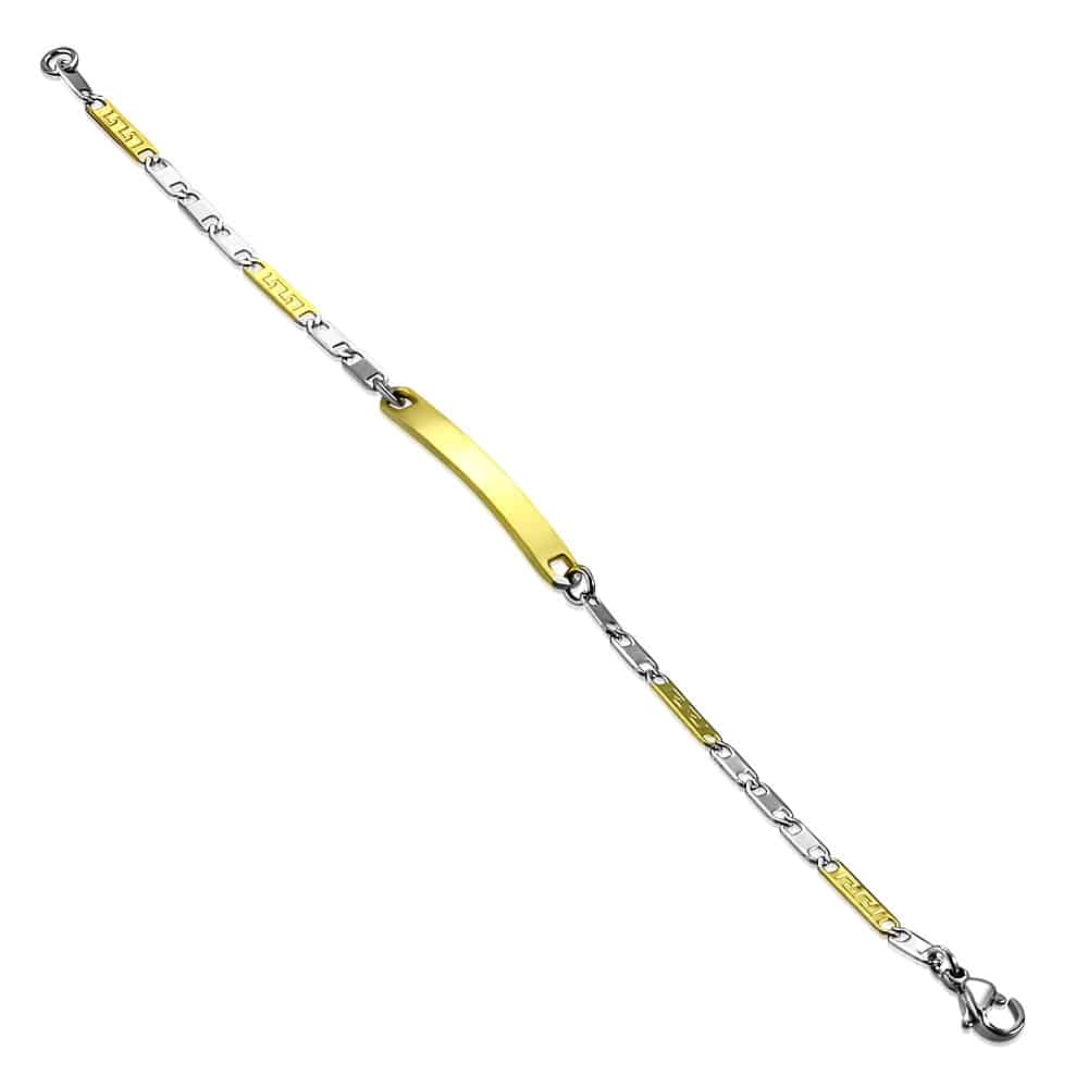 Arany és ezüst színű, görög mintás gravírozható nemesacél karkötő