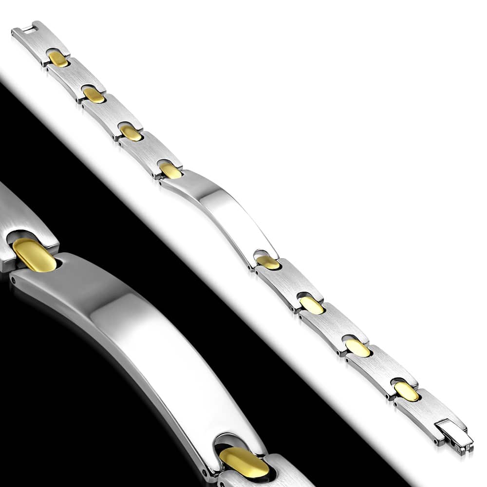 Arany és ezüst színű, gravírozható nemesacél karkötő férfiaknak és nőknek egyaránt nem csak hétköznapokra.