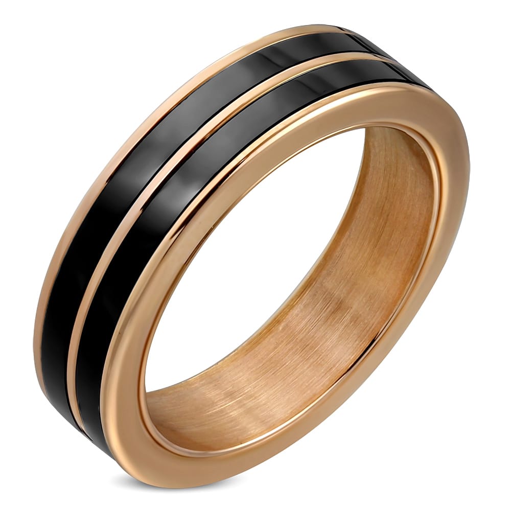 Ezüst és fekete színű nemesacél gyűrű -Fall In Love- felirattal