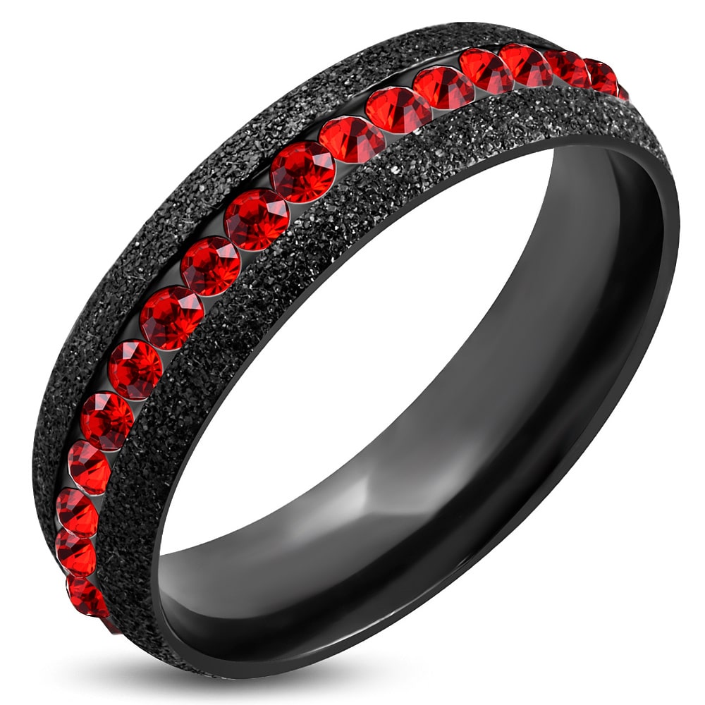 Fekete színű nemesacél gyűrű ékszer, piros színű cirkónia kristállyal