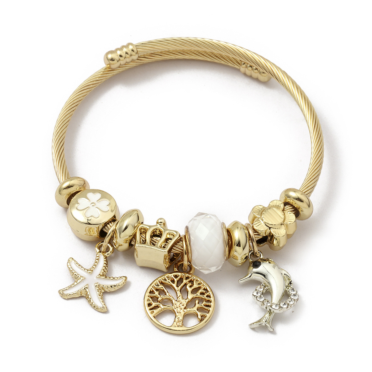 Arany színű Életfa Pandora stílusú charm kristályos karkötő – Kristály