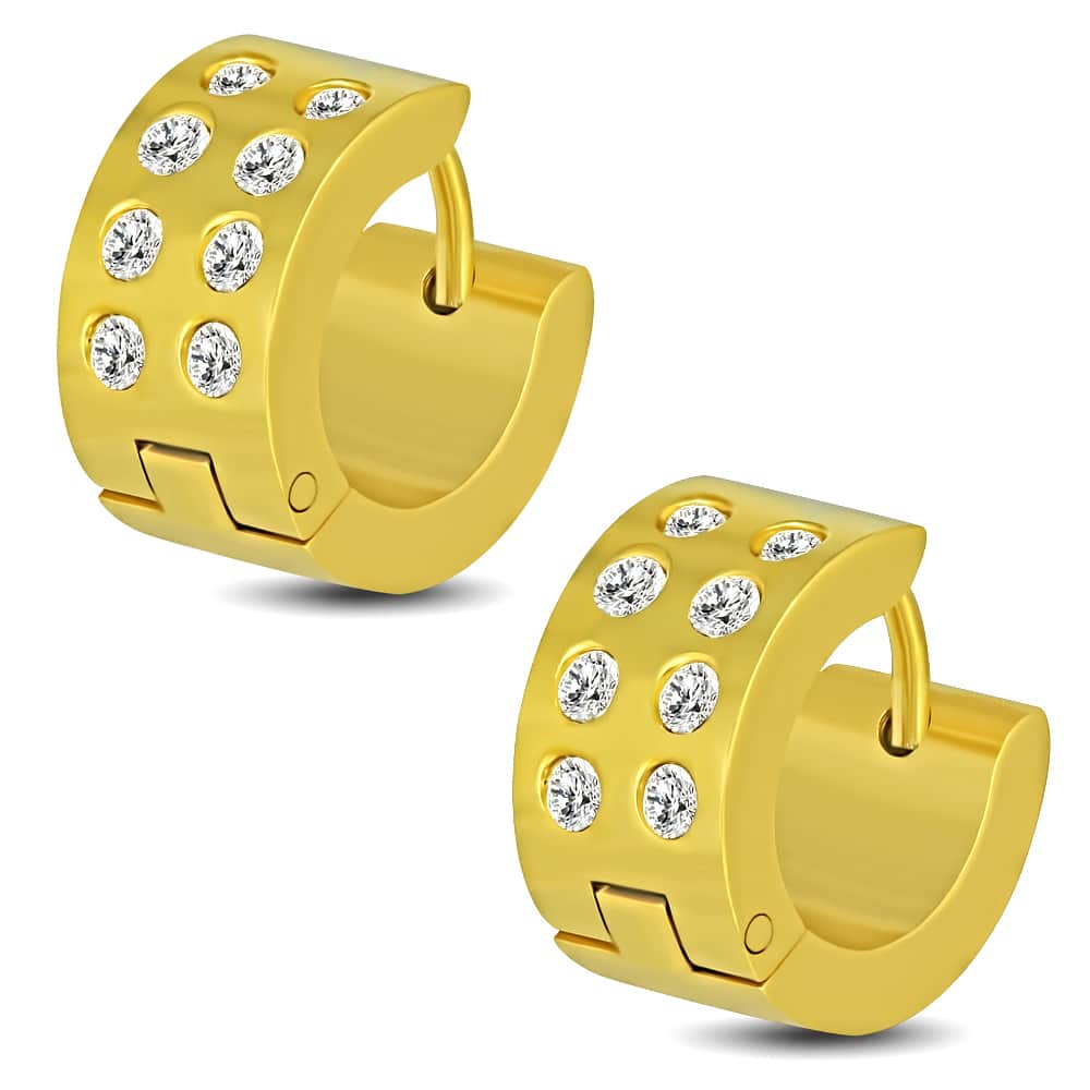 Arany színű karika nemesacél fülbevaló, cirkónia kristállyal