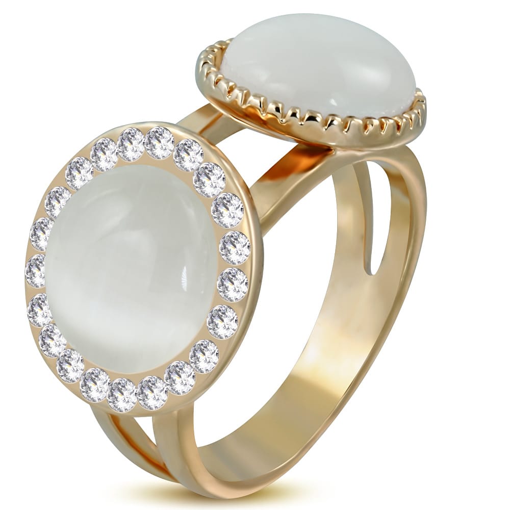 Arany színű koktél gyűrű, gyönggyel és cirkónia kristállyal