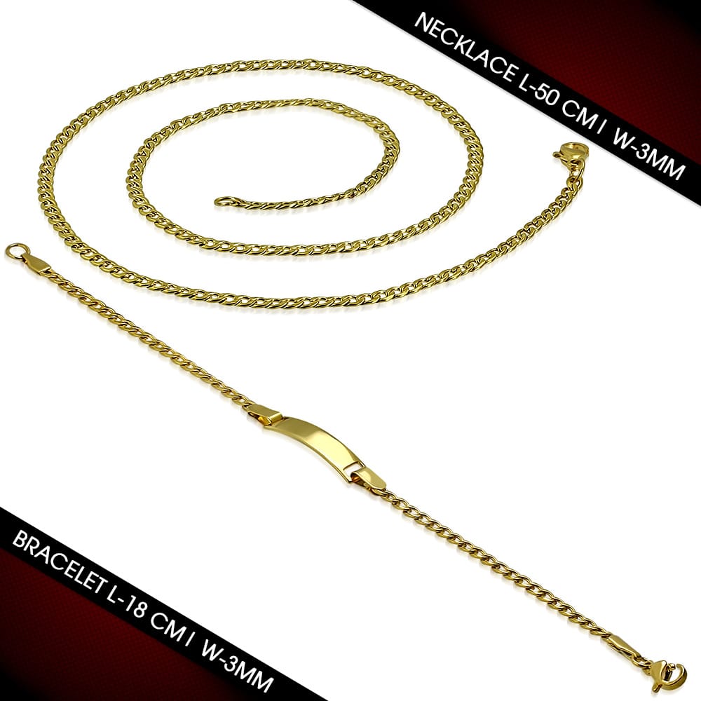 Arany színű nemesacél ékszer szett, gravírozható dísszel