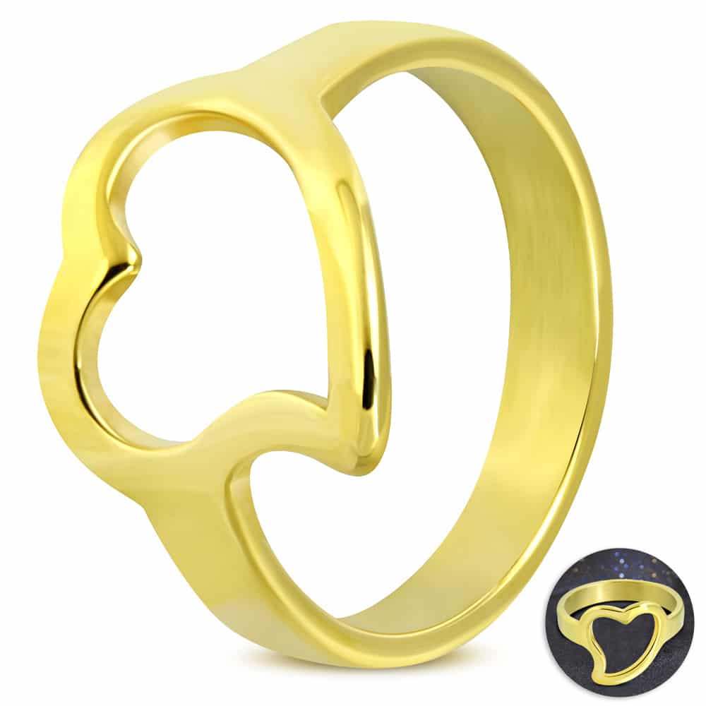 Arany színű nemesacél gyűrű, szív alakú mintával
