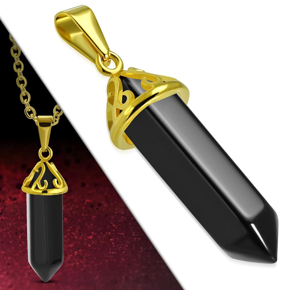 Arany színű nemesacél medál fekete kvarc kristállyal