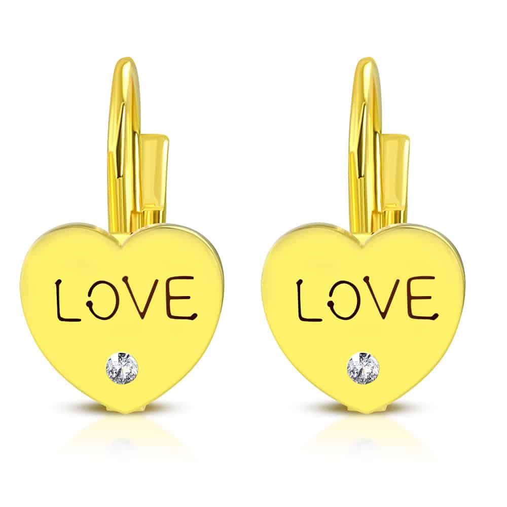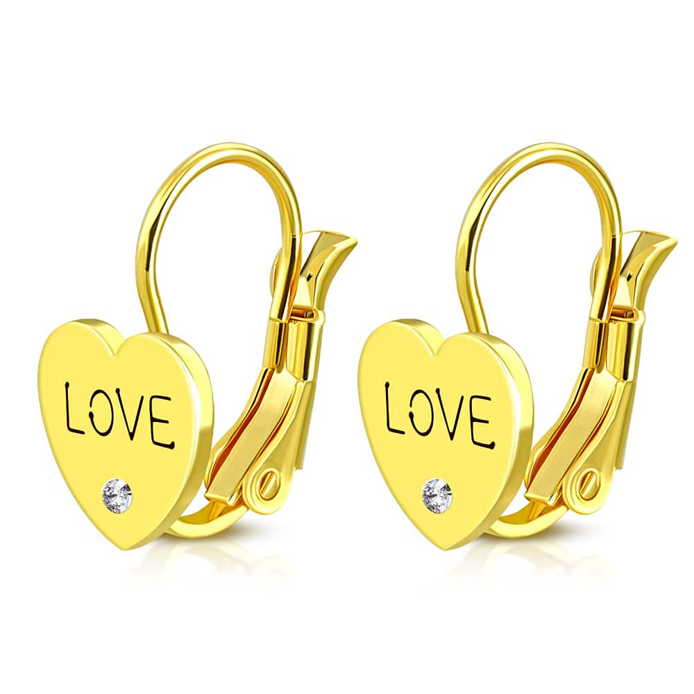 Arany színű, szív alakú nemesacél fülbevaló, cirkónia kristállyal