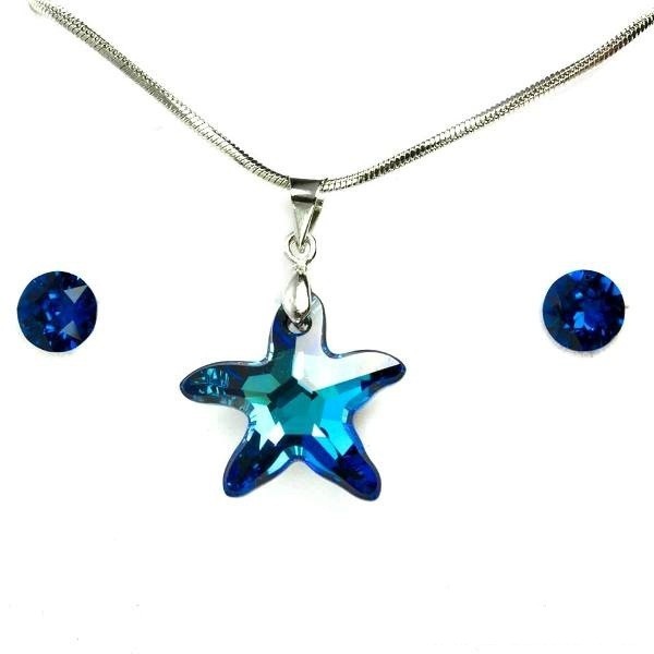 Aura kék Swarovski® kristályos ékszerszett – Starfish 20 mm, Bermuda Blue + díszdoboz