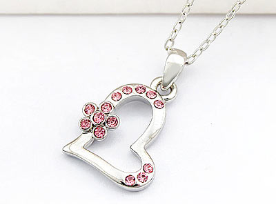 Aura kristályos nyaklánc szívecskés pink szinű virágos medállal