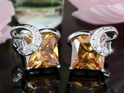A borostyán színű zafírok mély és meleg tónusai olyan eleganciát és varázst kölcsönöznek ennek a fülbevalónak, ami mindenki szívét elrabolja. Az 0,8 cm x 0,8 cm-es kőméret és az áttört stílus pedig még inkább kiemeli a fülbevaló szépségét. Súly: 2 gr/db