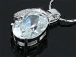 ✨ Kifinomult Dizájn: A fehérarany színű bevonat tovább fokozza az eleganciát. Az átlátszó CZ szimulált gyémánt ragyogása és elegáns ovális vágása teszi ezt a nyakláncot a stílus és a kifinomultság csúcsává.