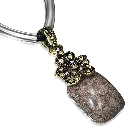 Barna négyzet alakú kristállyal ékesített nyaklánc