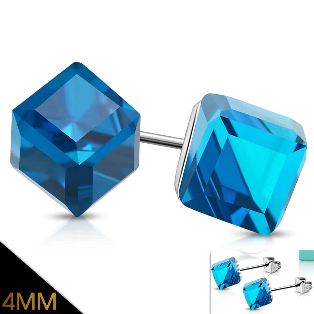 Cirkónia kristályos, kocka alakú nemesacél fülbevaló ékszer