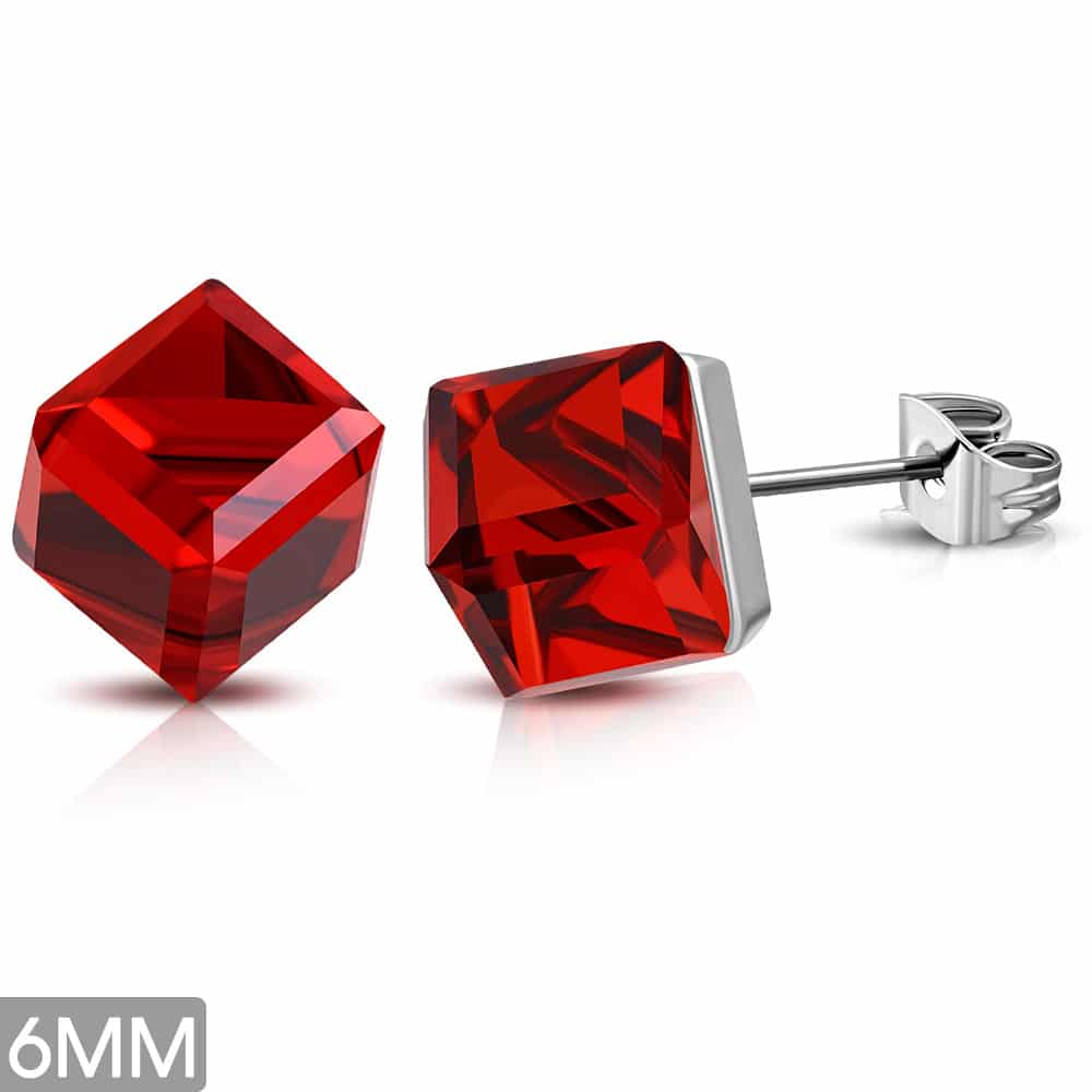 Cirkónia kristályos, kocka alakú nemesacél fülbevaló ékszer