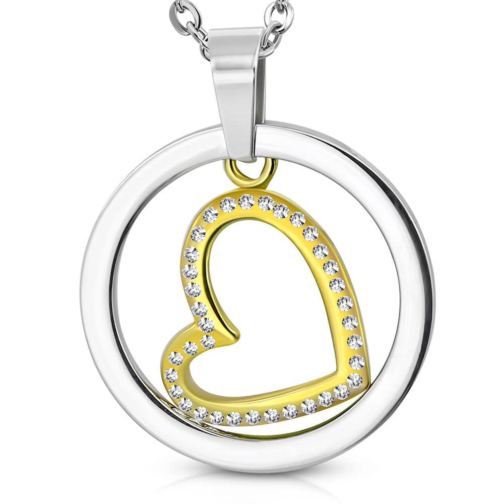 Crytal Heart Arany és Ezüst színű nemeascél medál
