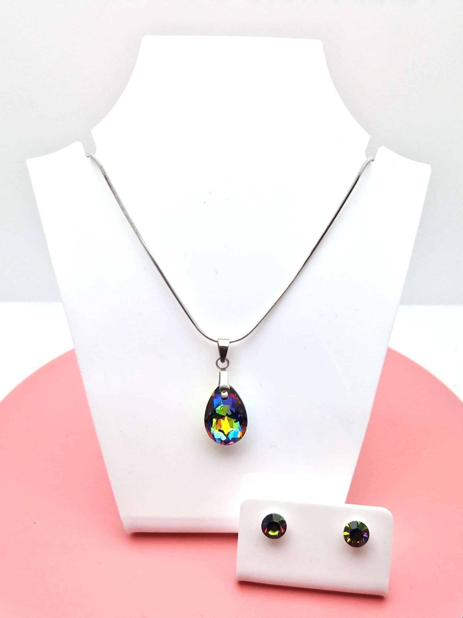 Csepp Swarovski kristályos nemesacél ékszer szett – Vitrail Medium