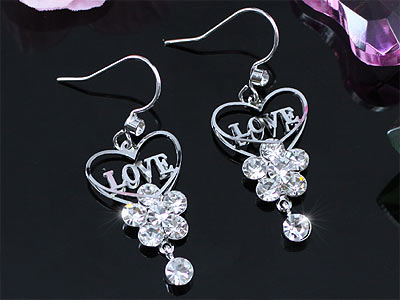 Elegáns Szív alakú Fehérarany Színű Virág Kristályos Fülbevaló: Ragyogó Megjelenés Minden Alkalomra