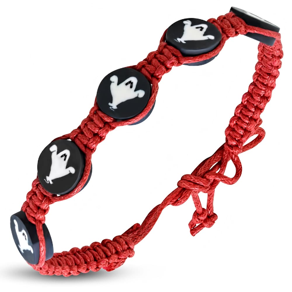 Fonott szálakból készült divat karkötő szellemes díszekkel.