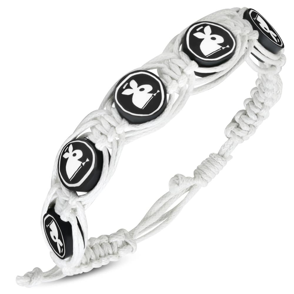 Fonott szálakból készült divat karkötő playboy nyulas díszekkel.