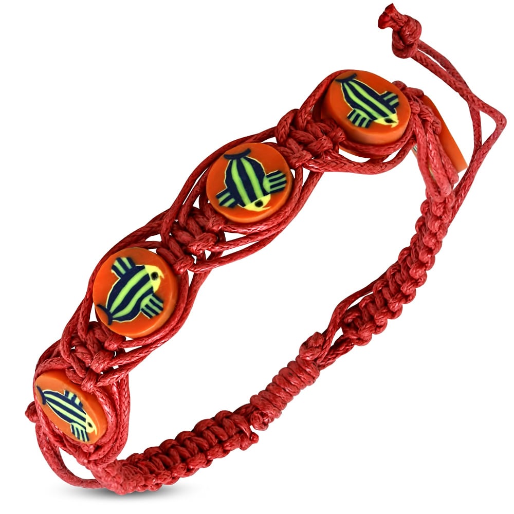 Fonott szálakból készült divat karkötő csíkos halas díszekkel.