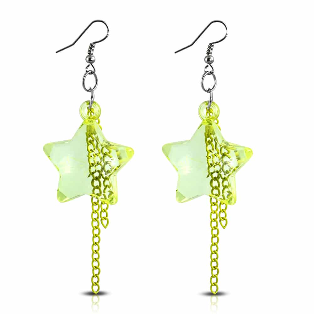 Divatos hosszú, sárga színű, csillag alakú fülbevaló